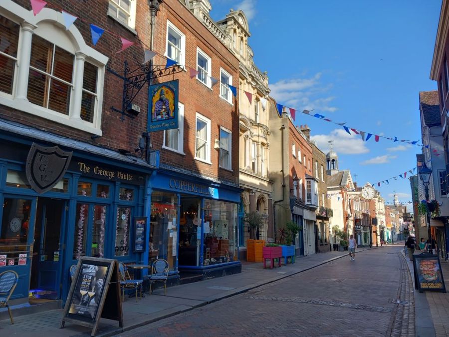 Egy hosszú utat magunk mögött hagyva végre leszálltunk a kompról. Első megállónk Anglia egy kisebb városába, Rochesterbe vezetett, ahol a pirostéglás házak, a High Street és a Rochester Cathedral igazán ámulattal töltöttek el minket. Az érzés, hogy már tényleg Angliában vagyunk, lenyűgöző volt, olyan filmszerű. Senki sem gondolta volna, hogy ezt nem csak képernyőn keresztül fogjuk látni.